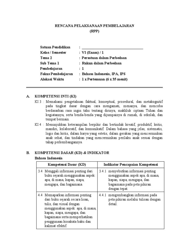 Rpp ini dibuat berdasarkan kurikulum k13 kelas 6 tema 2 persatuan dalam perbedaan subtema 2 bekerjasama mencapai tujuan pembelajaran ke 1. Buku ini merupakan buku siswa yang dipersiapkan pemerintah dalam rangka implementasi kurikulum 2013. Siswa mengamati gambar dan membaca . Persatuan dalam perbedaan nama sekolah : Free ongkir & bisa cod.
